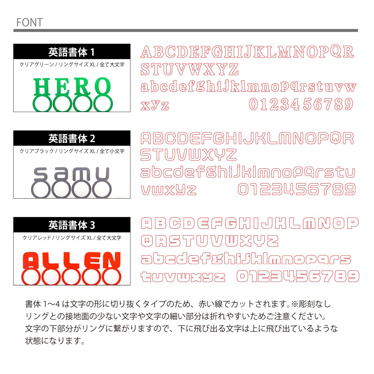 リングサイズは4種類ございます。アクリルを切り出して作成しますので、